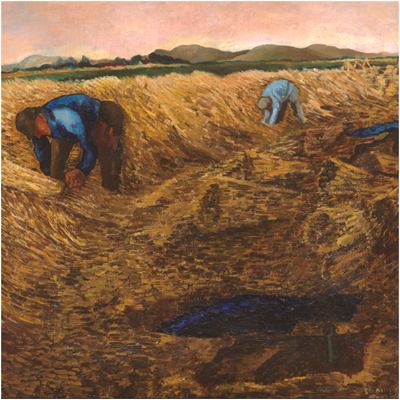 In de jaren na de Eerste Wereldoorlog verruilde Toorop Nederland voor de Borinage, het mijnbekken in België, waar Van Gogh zich in 1878 als predikant had ingezet voor de arme mijnwerkers. Ze trof er eenvoudige boerengezichten en verweerde landschappen die haar net zo diep troffen als Van Gogh destijds. Kort daarna reisde ze naar de Provençaalse heuvels, gefascineerd door het felle licht en de kleurrijke zonnebloemvelden. Die reis leidde tot een reeks landschappen en portretten waarin de echo’s van Van Goghs palet duidelijk zijn. Hoewel ze een geheel eigen signatuur ontwikkelt, is het juist die ‘diepe, barre liefde voor de realiteit’ , zoals Toorop Van Gogh omschreef, die haar en Van Gogh onlosmakelijk verbindt.